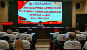 支部每月组织理论学习会,宣讲习近平新时代中国特色社会主义思想,分享国内外重大新闻;多次开展如“奋进新征程,展望新未来”、“学习党的二十大精神,牢记为人民服务宗旨”等主题党日活动,带领党员参观高坪区内建设、临江新区建设,体会改革开放的丰硕成果;参观红色纪念地,缅怀革命先辈丰功伟绩,重温入党誓词,赓续红色血脉;逢重大纪念日举办书画摄影作品展,带动白中学子承续书法绘画文明;组建党员同志为主要力量的退休教职工合唱团、广场舞队、太极拳队,参加校内外比赛获得佳绩;