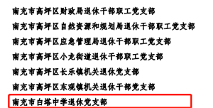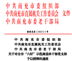 会上,宣读了全市“六好”示范离退休干部党支部通报文件,举行了全市“六好”示范离退休干部党支部代表授牌仪式。白塔中学退休支部榜上有名,成功创建“六好”示范离退休干部党支部,成为全南充市首批78个“六好”党支部中唯一一个中小学系列的“六好”党支部。
