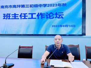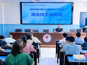 为进一步加强学校班主任队伍建设,切实推进班主任工作的有效开展, 9月14日下午,四川省南充市高坪三中举办了2023年秋季学期班主任工论坛。学校党总支书记张应龙,校长李伦,副校长邓刚、易文、冯敏、杨虎,工会主席汤琴出席本次论坛。全体班主任参加了本次论坛,论坛由副校长易文主持。