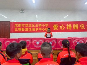 格桑梅朵开,金小爱永传。刘小平副校长代表金桥小学全体师生向波戈溪乡中心校的学生赠送了学习、生活用品,并鼓励同学们要把握机遇,刻苦学习,以优异的成绩回报党和国家。手拉手,心连心,活动更加增进了两校的友谊。