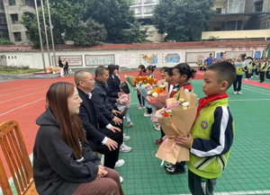 各班学生代表手捧鲜花向班主任献礼,深情道出“老师!您辛苦了!”。随即各班学生代表向班主任行了标准的队礼,眼神中满是对班主任老师的敬意。班主任接过鲜花,激动之情溢于言表。
