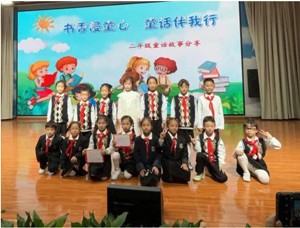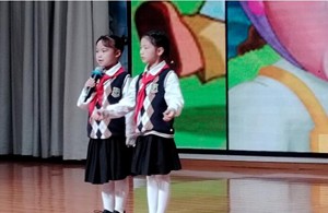 本次童话阅读展示活动还有一大亮点,那就是有一群可爱的主持人。为进一步培养学生的语言表达能力,给孩子们搭建更多锻炼和展示的平台,此次活动采取了“总分总”式主持机制。以两位小主持人为主导,负责活动开场、各环节衔接和总结。同时,十五个班每班选出一位小主持人专门负责点评总结上一个班的故事分享,并串出本班的节目。真是班班有主持,生生得锻炼,为教研组老师们的智慧点赞!