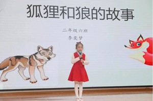 二(6)班的李奕梦同学为大家带来了《狐狸和狼的故事》。狐狸聪明灵活,善于思考和计划,而狼则强壮勇敢,擅长狩猎和保护自己的领地。起初,它们俩互相看不顺眼,但是在一次危机中,通过互相帮助和合作,建立了深厚的友谊。教育我们与别人和睦相处,别人就能真诚对待。
