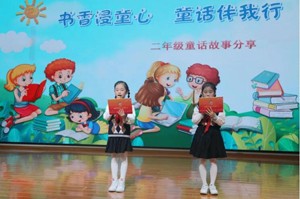 棠湖小学自2015年以来,学校就将阅读课程作为特色课程,创生出“纵横+项目式阅读”课程体系,积极探索“大阅读”推进策略。为营造良好的“书香校园”氛围,提高学生阅读热情,锻炼学生的语言表达能力,10月26日上午,学林楼迎来了二年级学生阅读成果展示活动——“书香浸童心? 童话伴我行”童话故事分享会。学校党支部书记、校长杨柳,专职副书记雷朝丽,副校长杨东宇,德育处副主任童瑶,教务处副主任崔秀琼等领导出席了活动。