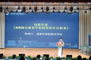作为AR德育课项目的参与学校,成都市高新新华学校副校长陈晓川分享《AR融合德育中的科技和文化教育》。