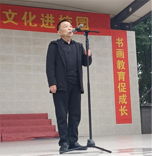 活动由老科协秘书长张金安主持。他说:送文化(毛笔书法)进校园,目的是通过展现毛笔书法艺术,助推书写技能的提高,欣赏毛笔书法的艺术魅力,传承优秀传统文化,培养审美情趣,陶冶情操,提高文化技能和修养。