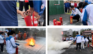 在消防灭火演练现场,学与练可谓“热火朝天”。消防官兵重点讲解了灭火器“提、拔、握、压”四字诀,教师、学生代表一边用心听讲,一边上手实践操作,在消防官兵的耐心指导下,大家顺利地、成功地扑灭了熊熊火焰。