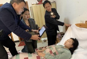 剑阁职中的高三学生敬雨丹,2023年11月做完手术,即使半躺状态都难以实现,此时正是术后20天的治疗和恢复关键时刻,错过了学校统一的信息采集,只能登门进行信息采集。面对现实情况,邓主任决定以学生养病的躺卧姿态采集,小心地铺垫衬布,正面主视图改为俯视图拍摄,完成首次采集。由于学生家的灯光暗淡,又找不到台灯补光,拍摄图像光线清晰度不够,邓主任决定让随行老师采用打开所有手机电筒补光,完成了清晰的第二次采集。