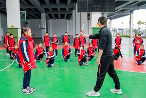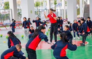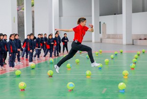 学生抛接球练习快速反应力。