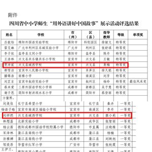 2023年四川省“用外语讲好中国故事”比赛获奖名单近日揭晓,兴文县城西学校学生贾沛宸、刘祥然分别荣获特等奖、一等奖!