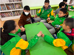 动动眼,动动脑,看!在专注力训练中,甘老师采用舒尔特方格来锻炼孩子们的视觉专注力。舒尔特方格是一种训练注意力的方法。在一张方形卡片上画上多个方格数字,分别为1-9、1-15、1-25等数字。训练时,要求被测者用手指按1-9、1-15、1-25的顺序依次指出其位置,同时诵读出声,施测者一旁记录所用时间。数完9、15或25个数字所用时间越短,注意力水平越高。此时,大家的注意力都非常集中,两位特殊儿童积极表现,普通孩子认真参与,激烈的角逐着,专注力也在稳步提升。