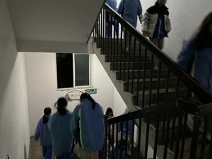 晚上8点50分,警报声响起,各住管员稳定学生情绪,在确定周围情况安全之后,迅速打开宿舍门,引导学生有序离开宿舍。同时各楼层负责人和安全保障组成员迅速就位,维护各楼层纪律,指导学生做好防护有序撤离。