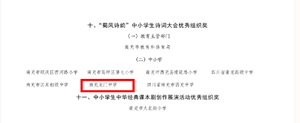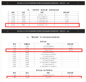 近日,四川省 2023 年中华经典诵写讲演系列活动获奖名单公布,南充龙门中学荣获4项省级奖励。学校在活动中荣获“蜀风诗韵”中小学生诗词大会优秀组织奖;叶灵老师指导谭盛元同学荣获“书香天府·阅读之星”称号,蒲静、李丹老师分别指导秦蓓、王天翼同学荣获“蜀风诗韵”中小学生诗词大会初中组、高中组三等奖。
