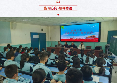 此次四川省南充市高坪第三初级中学团委新一届学生会的成立,不仅为新一届学生会的未来发展指明了方向,也为学校的团学工作注入了新的活力。相信在全体成员的共同努力下,新一届学生会定将书写更加辉煌的篇章,为高坪三中的繁荣发展贡献青春力量。(四川省南充市高坪第三初级中学 : 文字/杨雪萍 图片/杨婧)