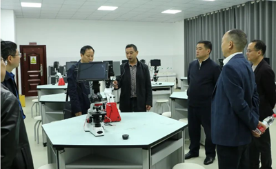 在黔江新华中学党委书记秦大鹏、校长刘兵兵的陪同下,廖茂荣一行参观了黔江新华中学的校园环境,了解了新华中学心理健康教育、实验教学的开展情况,并就新高考改革、评价改革等方面进行了深度交流。