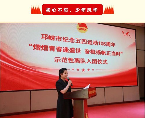 在春的序章中,五四的钟声悠扬,唤醒了一代代青年的心灵。我们,作为时代的年轻守望者,肩负着历史的赋予和未来的梦想。少年壮志不言败,揽星逐日追梦行。为纪念五四运动105周年和共青团成立102周年,深入学习贯彻党的二十大精神,提高学生对共青团的认识,进一步增进团员青年爱党爱国的深厚情感,增强共青团员“听党话、感党恩、跟党走”的思想自觉和行动自觉,由共青团邛崃市委、市教育局主办,邛崃市第一中学校承办的邛崃市纪念五四运动105周年“熠熠青春逢盛世,奋楫扬帆正当时”示范性离队入团仪式,于2024年4月19日下午14:00在鹤山讲堂举行。