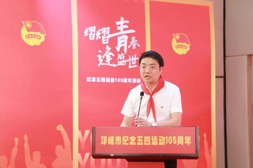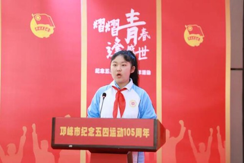 邛崃市少先队总辅导员李珉讲话。鼓励新时代的青年能够不畏一切艰难险阻,理论联系实际,增强团队意识,有理想、敢担当、能吃苦、肯奋斗,在劈波斩浪中开拓前进,在攻坚克难中创造业绩,用青春和汗水创造出属于新时代青年的骄傲和辉煌!