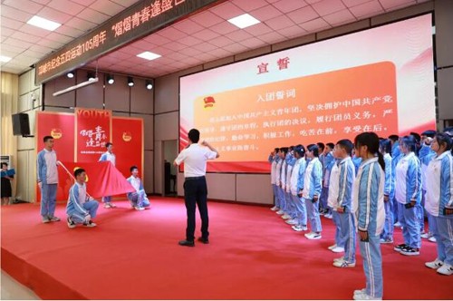 团旗下,新团员们目光坚定,庄严宣誓。庄严的宣誓仪式,激发了他们对共青团组织的热爱与向往。