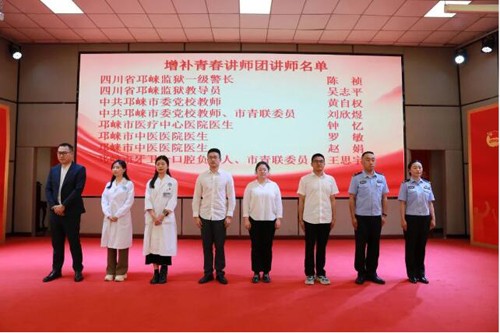 同时由中共邛崃市委宣传部副部长熊伟、邛崃市教育局党组成员、副局长汤银君为今年补增的青春讲师颁发聘书。