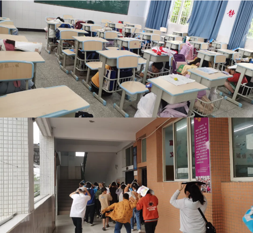 随着地震预警警报的响起,全校师生立即进入演练状态,全体师生按照学校统一指令和要求,进行紧急避险。