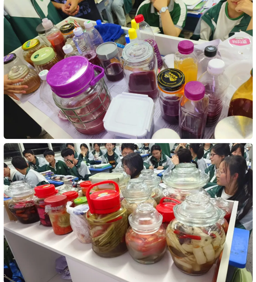 为落实德智体美劳全面发展的党的教育方针,根据四川省西充中学《德育课程化实施方案》《“五育并举”活动实施方案》《劳动教育实施方案》等的要求,2024年上期,在同学们学习了生物学科选择性必修三《传统发酵技术的应用》的理论知识后,该校分时节开展了“泡菜制作”“果酒酿制”劳动实践活动。活动由学工处组织,学工处副主任、生物教师何琴具体负责指导,高2022级15、17班全体同学参与。