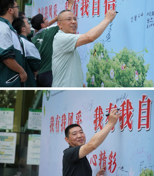 在副校长冯长霖、文志勇等学校领导的带领下,同学们纷纷在签名墙签名留念,并踊跃参加由德羽后勤西充中学项目部准备的一系列互动游戏。碰拳礼挑战、留下你的笑脸、爱的拥抱、心愿与心灵标签、双人运气球、传递呼啦圈等趣味活动。同学们收获奖品,暂忘烦苦,进一步增加了必胜的信心和决心。