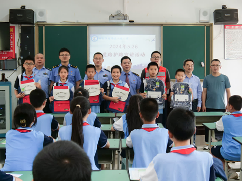 为支持地方经济建设,提高学生铁路安全意识,5月24日,南充市高坪区小龙小学联合南充市公安局高坪分局、高坪区综合行政执法局、小龙街道办事处、南充铁路派出所、遂宁工务段、达州供电段、遂宁车务段南充东站等单位开展爱路护路宣讲活动。