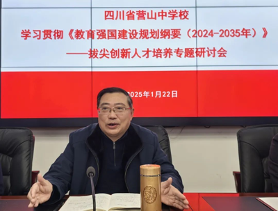 2025年1月22日,四川省营山中学召开党委扩大会,就深入学习贯彻《教育强国建设规划纲要(2024-2035)》文件精神、明确拔尖创新人才早期培养路径进行了研讨。会议由学校党委书记曾振宇主持,党委班子出席会议,教务处、年级管理处负责人、部分教师代表参加会议。