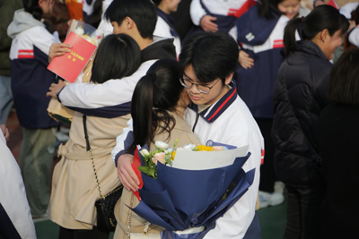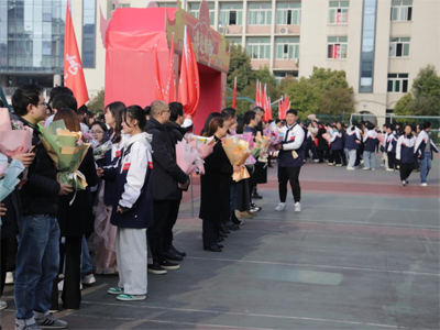 随后,同学们手捧鲜花,走向老师。老师们站在各班队伍前,脸上满是欣慰与感动。一束束鲜花,是对老师辛勤付出的感谢,也是师生情谊的见证。感恩父母的养育,感恩老师的教诲,这份感恩将化作前行的动力,激励同学们不断奋进。