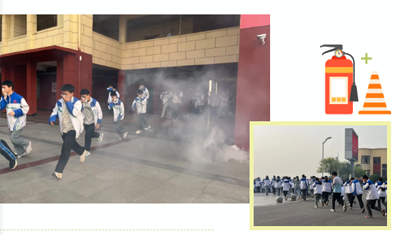 随着警报声骤然响起,演练正式拉开帷幕。各班级教师迅速响应,组织学生们按照预定的疏散路线,有序撤离教室。同学们用手或书本捂住口鼻,低姿前行,整个疏散过程紧张而有序。在保卫处工作人员和老师的引导下,学生迅速、安全地抵达了指定的集合地点。
