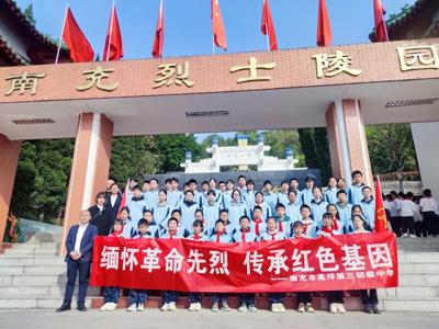 4月3日上午,高坪三中师生代表前往南充市西山烈士陵园,开展清明祭扫活动。参加活动的有副校长易文,工会主席汤琴,党员教师代表和五十名优秀学生代表。