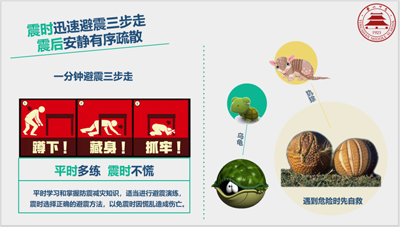 “当地震发生时你在家里,应如何避震?”“地震发生后,从高楼撤离时应走什么通道?”知识抢答环节,学生们争相举手,应急指南与科学常识在欢声笑语中悄然扎根。
