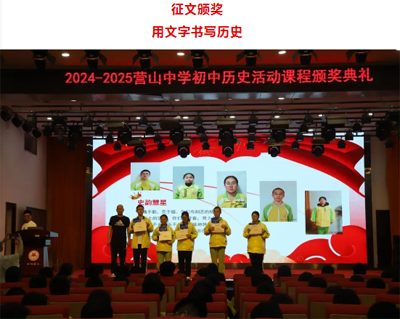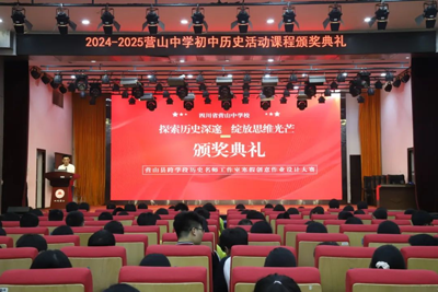 4 月 10 日,四川省营山中学初中历史活动课程颁奖典礼在营山中学天伟会堂举行。这次活动以 “历史启智 ?创新筑梦” 为主题,通过读书沙龙和创意作业设计大赛,为学生搭建起探索历史、展现创意的广阔舞台,让思维的火花在千年文脉中绚丽绽放。
