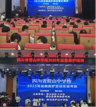 为响应《中国红十字会总会 教育部关于进一步加强和改进新时代学校红十字工作的通知》要求,提升师生应急救护与自救互助能力,2025年6月16日,营山县教育和体育局、营山县红十字会、四川省营山中学校、营山县博爱志愿者协会在营山中学联合举办“2025年红十字会救护员培训班”,全校高三毕业生及部分教职工参与此次培训。