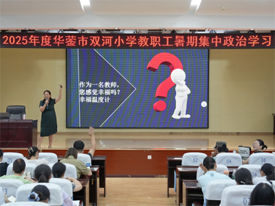 为深化教师教育初心,提升育人能力与心理健康素养,8月28日,华蓥市双河小学特邀心理健康培训师,在学校实训中心开展以“做一名更有幸福感的教师”为核心的专题培训,全体教师齐聚一堂,共探以积极心态赋能学生成长的教育之道。