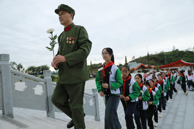 活动第二阶段以“听红色过往·敬烈士丰碑”为主题,学校特邀广安市金安戎声宣讲团、华蓥市老兵宣讲团成员张昌仁同志,为队员们讲述革命先烈的战斗故事。一段段峥嵘岁月、一个个英雄事迹,深深触动了在场每一位队员的心灵,让大家深刻感悟到今日幸福生活的来之不易。故事会结束后,全体师生怀着崇敬之心,前往瞻仰烈士纪念碑,向革命先辈敬献鲜花,队员们以标准的队礼,表达对英烈的深切缅怀与崇高敬意。