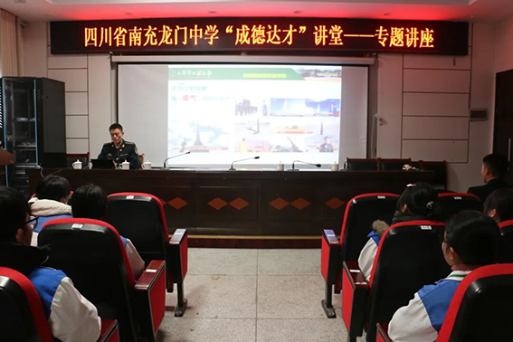 为厚植青年学子爱国强军情怀,进一步完善军地院校协同育人机制,激发投身强国伟业的青春壮志,12月17日,南充龙门中学“成德达才”讲堂特邀中国人民解放军火箭军工程大学宣讲团作强军报国专题讲座。讲座由副校长张洪波主持。
