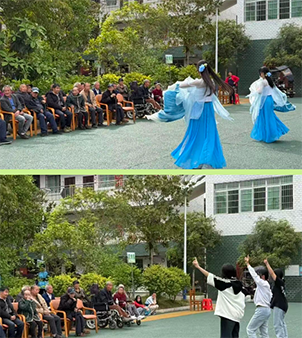 卫生打扫完毕后,文艺表演环节正式拉开帷幕。同学们精心准备了形式多样的节目,歌声嘹亮、舞姿轻盈,真挚的表演赢得了老人们的阵阵掌声。悠扬的旋律萦绕在养老服务中心的每个角落,稚嫩的笑容与老人们慈祥的脸庞相映成趣,现场氛围温馨而热烈,让老人们在欢声笑语中感受到了来自社会的关怀与温暖,也丰富了老人们的精神文化生活。