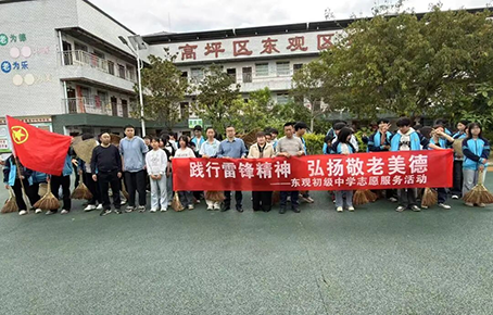为深入弘扬尊老敬老的中华传统美德,践行“奉献、友爱、互助、进步”的志愿精神,4月1日上午,四川省南充市东观初级中学校长、党支部书记杨军,副校长李林,政教处主任刘洪兵,团委书记杜康林带领学生志愿者,走进东观区域养老服务中心,开展“践行雷锋精神,弘扬敬老美德”志愿服务活动,用实际行动为老人们送去关怀与温暖。