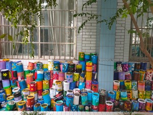 空了的奶粉罐、油漆桶有什么用?它不仅可以变成精美的艺术品,还可以激发孩子的创作热情,用自己的双手和实际行动让废弃的奶粉罐、油漆桶绽放别样魅力,为校园增添一道道亮丽的风景线。