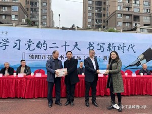 受市书协安排,德阳市书法家协会副秘书长陈荣通 、吴隽同志代表市书协现场向我校赠送书法作品集。