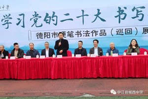 德阳市书法家协会常务副主席、功能型党支部书记李嗣德同志在讲话中首先表达了城西中学对书法活动的重视,感谢城西中学为这次活动所作的努力;其次他提到:今年将继续深入开展书法进校园活动。希望学校能够坚持传统艺术教育,通过硬笔书法大赛作品展览激发中小学重视传统文化教育的热情,将传统文化根植于心底。
