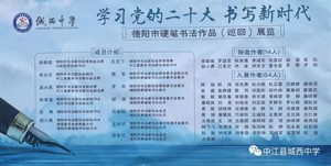 书法是中华文化的国粹,承载着中国人文化传承的基因。2022年11月9日,由德阳市书法家协会主办,中江县城西中学承办的“学习党的二十大·书写新时代”德阳市硬笔书法作品展在中江县城市中学举行。德阳市书法家协会常务副主席李嗣德,德阳市书法家协会副主席吴大亮,德阳市书法家协会副秘书长陈荣通、吴隽、顾小勇,中江县教育科学研究所副所长谭中攀等一行十余人莅临展览现场,并指导该校学生现场书法比赛。