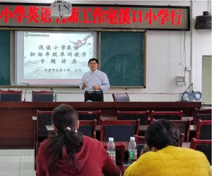最后,华蓥市李春林名师工作室成员龙伟老师,为大家带来了一堂《浅谈小学英语初始年级单词教学》专题讲座。通过龙老师激情飞扬地讲解,让大家了解到了他平时课堂中运用的动画教学法、实物教学法、幽默教学法、游戏教学法、颜色教学法等单词教学法,使孩子们觉得学习单词轻松又有趣,让他们在愉快的学习情景中学会单词。