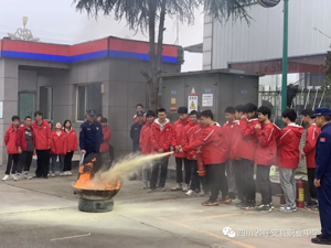 消防战士为同学们介绍了使用干粉灭火器的“提、拔、握、压”四字诀,并让同学们现场体验如何操作。
