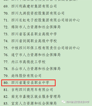 笔者从四川省人力资源和社会保障厅获悉,在人力资源社会保障厅等5部门联合组织开展了2022年四川省高技能人才工作评选表彰活动中,四川省蓬安县职业中学是南充市唯一一所荣获“四川省高技能人才培育先进集体”的职业院校。