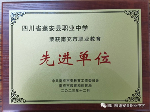 12月21日,由中共南充市委教育工作委员会、南充市教育和体育局联合举办的南充市职业教育工作大会在南充高中临江校区举行。蓬安职中荣获南充市职业教育“先进单位”称号,李秀文、唐静、唐国辉老师荣获南充市职业教育“先进工作者”称号,王林平、唐会君、胡良春老师荣获南充市职业教育“优秀教师”称号。