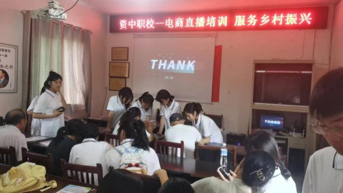 为助力乡村振兴,培训村民电商直播专业技能,同时,提升电子商务专业学生实践能力,2024年5月28日,资中县职业技术学校13名电子商务专业学生在社会培训处、水南校区党支部、电商专业教师的带领下,到资中县高楼镇雨台村对村民进行电商直播培训。