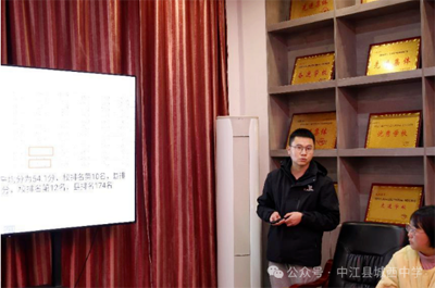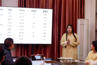 付强老师主要从“成绩分析、学生现状分析、教学现状分析、后期教学规划”四个方面作了教学工作汇报,并将自己的后期目标定位为:立足实际,踏实教学,不断增强学生学习英语的信心,从而营造良好的英语学习氛围。