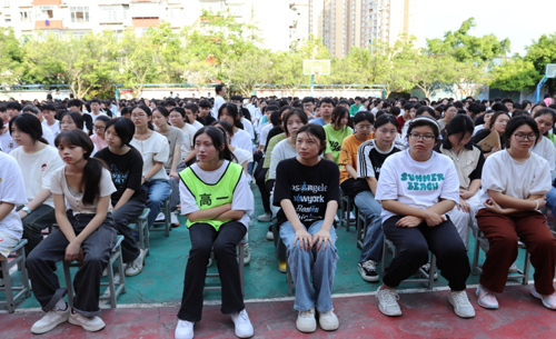 高三学生代表吴丹、新生代表范虹良表示要“勤奋学习、奋力拼搏、不负韶华”,在知识的海洋中汲取营养,用青春和智慧去迎接未来。
